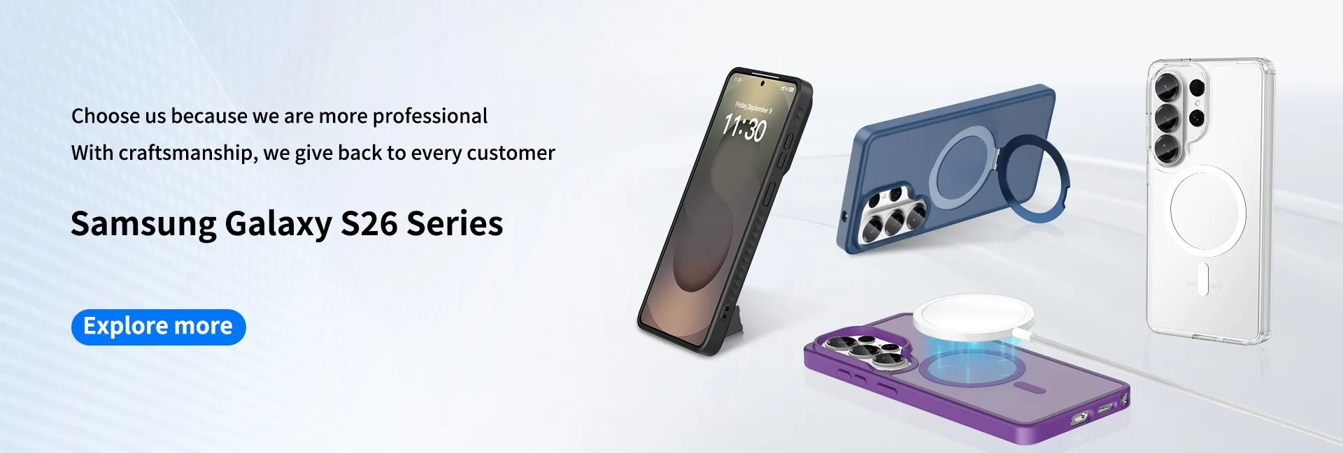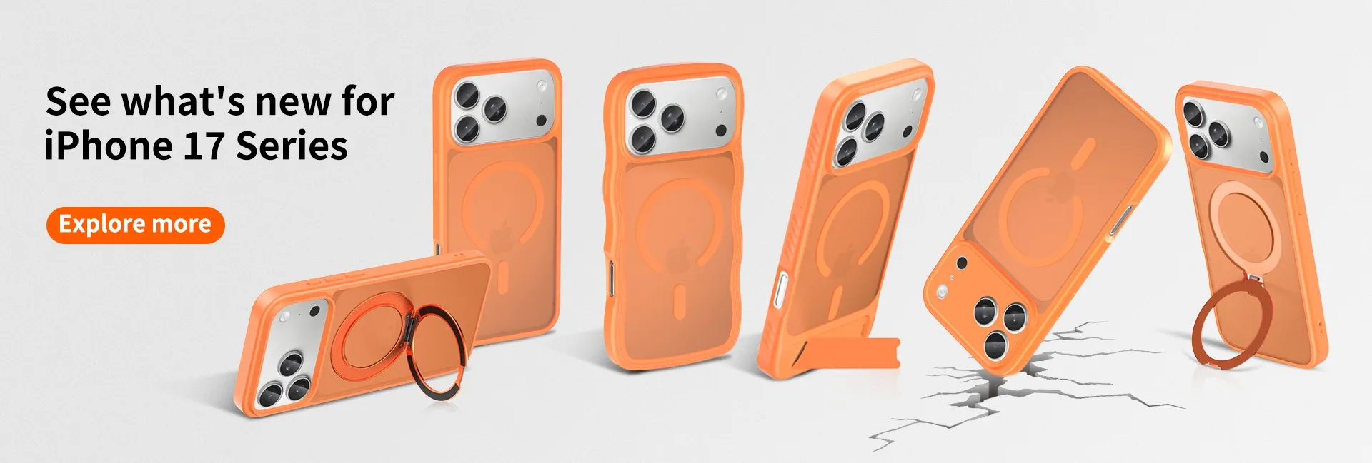 주요 제품:2-in-1 하이브리드 아크릴 클리어 케이스, 피부 느낌 라켓 스탠드, 실버 쉴드 스킨 센스 2-in-1 (2.0mm), Fengshang 45 도 피부 느낌 브래킷, armour PC TPU 2-in-1 Magsafe 케이스