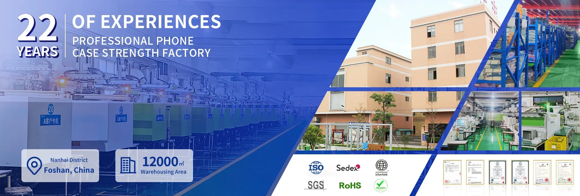 Founded in 2003, Sanfeng specialized in design, research & development, manufacturing mobile phone cases and accessories for more than 20 years, our main products is 1.5MM/2.0MM thick clear hybrid case, matte frosted skin feel case, magnetic wireless charging case, tpu+pc dual layer rugged case, full-body front & back protective cases...